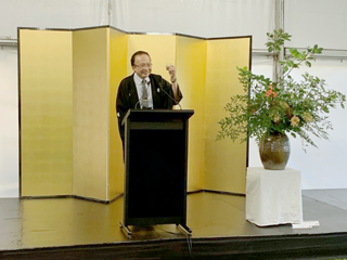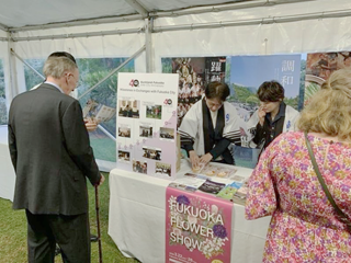 The reception was an opportunity to deepen friendship and exchanges at the various levels and also contribute to the promotion of further investment between Japan and New Zealand through a variety of Japanese culinary presentation by Official Chef Kitazono along with the local Japanese businesses, an Ikebana display on the stage, exhibitions of some companies ((Lion (Kirin Holdings Company Limited), Obayashi/Halcyon、TOYOTA NZ), booths with information about sister-city relations (Fukuoka city), Japanese tea tasting and Japanese sake tasting.